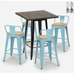 - Ensemble composé d’1 table haute carrée et de 4 tabourets