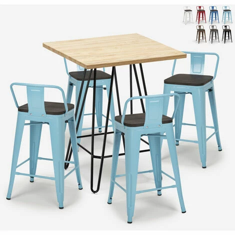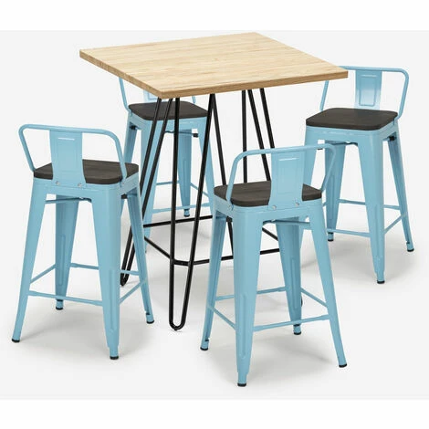 - Ensemble composé d’1 table haute carrée et de 4 tabourets