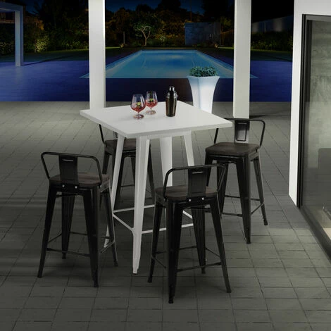 - Ensemble composé d’1 table haute carrée et de 4 tabourets