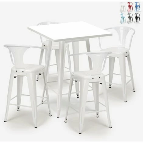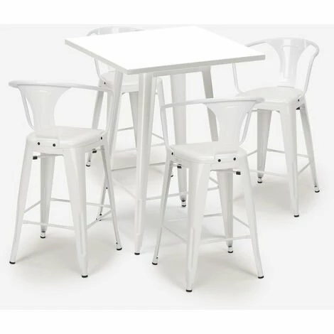 - Ensemble composé d’1 table haute carrée et de 4 tabourets