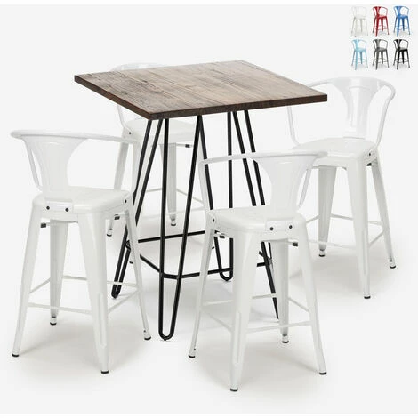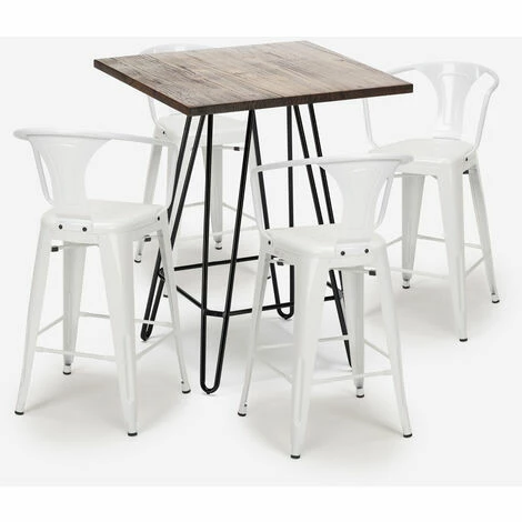 - Ensemble composé d’1 table haute carrée et de 4 tabourets