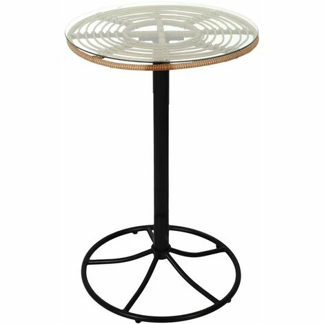 Structure en acier coloris noir. Tressage plateau inférieur en polyéthylène coloris marron. Plateau en verre transparent.