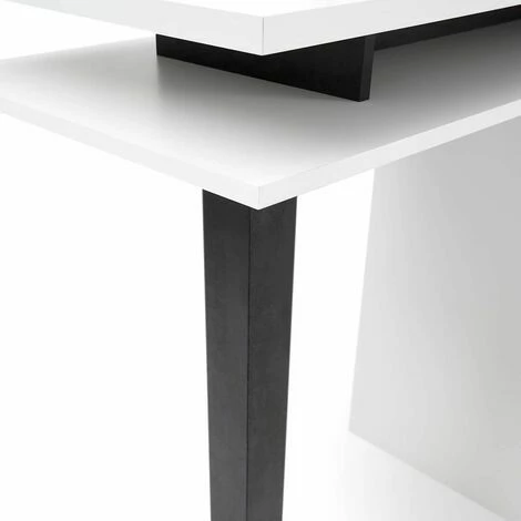 Structure en panneaux de particules, revêtement décor papier blanc et béton noir. Plateau supérieur en mélaminé.
