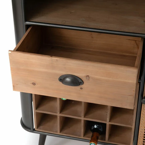 Le meuble bar Eugène à cannage vous séduira grâce par son allure massive. Ses formes arrondies lui confèrent un look rétro et ses matériaux en bois et métal apportent un style industriel. Le tout rehaussé par les poignées en métal aux inspirations meuble d’atelier. Pour une décoration de caractère, ce meuble bar Eugène sera la pièce maîtresse de votre intérieur.