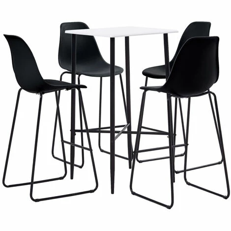 Avec un design moderne et contemporain, notre ensemble de bar est idéal pour les maisons, jardins, bars, pubs ou restaurants modernes. Son design épuré et contemporain complétera toute décoration intérieure. Le dessus de table est en MDF qui est facile à nettoyer. Le cadre en acier enduit de poudre ajoute à la stabilité et à la solidité de la table de bar. Les chaises de bar ont une assise ergonomique avec dossier intégré dans un look moderne et courbé. De plus, elles sont faciles à monter. Notre ensemble de bar est idéal pour savourer un verre de vin au bar, manger quelque chose au comptoir ou pour l’utiliser comme siège supplémentaire lorsque vous avez des invités. La livraison comprend une table de bar et 4 chaises de bar.