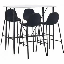 Avec un design moderne et contemporain, notre ensemble de bar est idéal pour les maisons, jardins, bars, pubs ou restaurants modernes. Son design épuré et contemporain complétera toute décoration intérieure. Le dessus de table est en MDF qui est facile à nettoyer. Le cadre en acier enduit de poudre ajoute à la stabilité et à la solidité de la table de bar. Les chaises de bar ont une assise ergonomique avec dossier intégré dans un look moderne et courbé. De plus, elles sont faciles à monter. Notre ensemble de bar est idéal pour savourer un verre de vin au bar, manger quelque chose au comptoir ou pour l’utiliser comme siège supplémentaire lorsque vous avez des invités. La livraison comprend une table de bar et 4 chaises de bar.