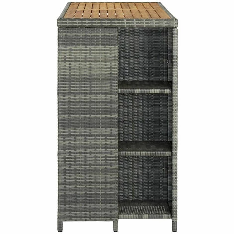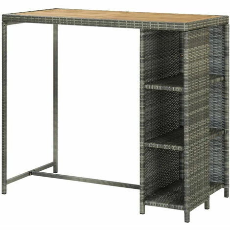 La table de bar avec étagère de rangement est un choix parfait pour toute maison, jardin, bar, pub, restaurant, etc. Cette table de bistro est faite de résine tressée et cadre en acier, ce qui la rend durable et stable. Le dessus de table robuste est fait de bois d’acacia massif et peut être utilisé pour mettre vos boissons et collations. Le support de rangement latéral comprend 3 étagères et offre un espace de rangement supplémentaire pour vos articles à portée de main. Grâce à sa construction légère, la table de salle à manger est également facile à déplacer.