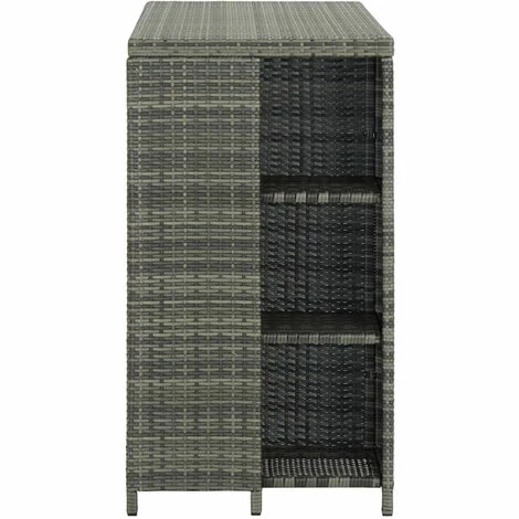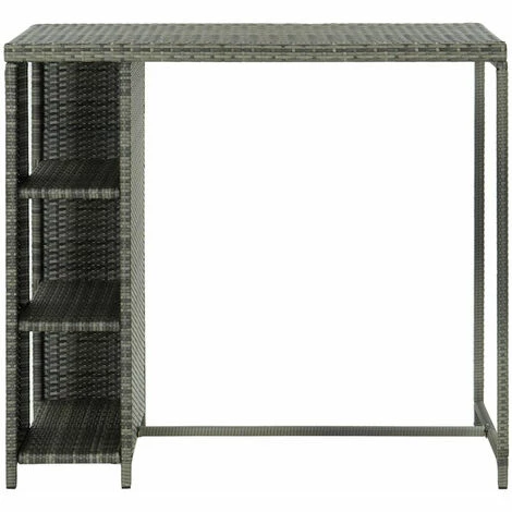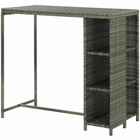 La table de bar avec étagère de rangement est un choix parfait pour toute maison, jardin, bar, pub, restaurant, etc. Cette table de bistro est faite de résine tressée et cadre en acier, ce qui la rend durable et stable. Le support de rangement latéral comprend 3 étagères et offre un espace de rangement supplémentaire pour vos articles à portée de main. Grâce à sa construction légère, la table de salle à manger est également facile à déplacer.