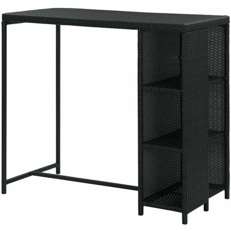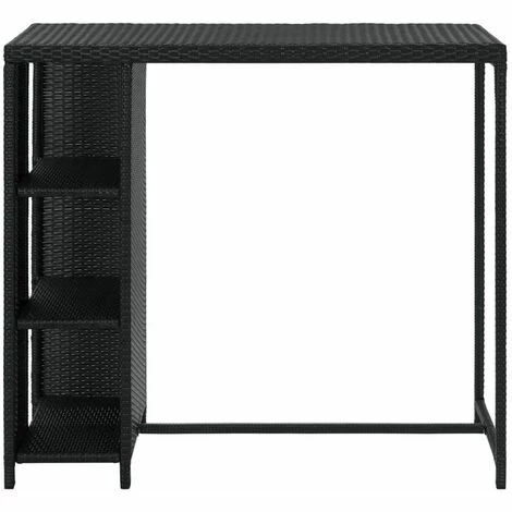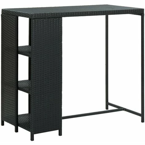 La table de bar avec étagère de rangement est un choix parfait pour toute maison, jardin, bar, pub, restaurant, etc. Cette table de bistro est faite de résine tressée et cadre en acier, ce qui la rend durable et stable. Le support de rangement latéral comprend 3 étagères et offre un espace de rangement supplémentaire pour vos articles à portée de main. Grâce à sa construction légère, la table de salle à manger est également facile à déplacer.