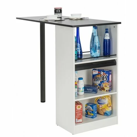Meuble Rangement de Cuisine Coloris Blanc avec Table et Pied Métal