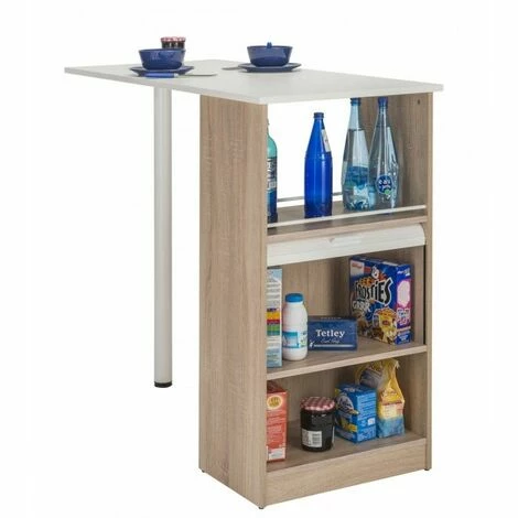 Meuble Rangement de Cuisine Coloris Chêne Naturel avec Table et Pied Métal