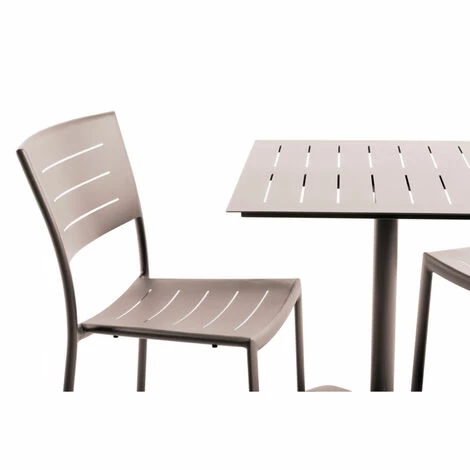Cette table de bar carrée Inari coloris muscade est composé d’une structure en aluminium de 70x70x75cm. Le plateau est ajouré de dimensions :70x70xh75 cm