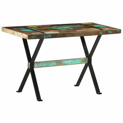Cette table de salle à manger en bois de style industriel constitue un complément captivant à votre cuisine ou salle à manger. La table de salle à manger est fabriquée en bois massif de récupération, provenant des solives, des planchers et des poutres de soutien de vieux bâtiments démolis. De plus, elle peut se composer de différents types de bois tels que le teck, le bois dur, le bois tropical, le bois de manguier, etc. Cela signifie que le bois de récupération conserve les caractéristiques de ces différents types de bois. Le bois de récupération est déjà vieilli, altéré et séché. Par conséquent, il ne rétrécit pas ou ne se plie pas. Les solides pieds en acier enduit de poudre ajoutent une stabilité supplémentaire à la table. Remarque importante : les couleurs et les grains varient d’une pièce à l’autre, rendant chaque pièce unique ; la livraison est aléatoire.