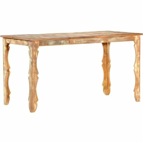 Cette élégante table de salle à manger sera un supplément distinctif à votre cuisine ou salle à manger. Cette table à dîner est faite de bois de récupération solide provenant de solives, de planchers et de poutres de soutien de vieux bâtiments démolis et peut être composée de différents types de bois comme le pin, le teck, le hêtre, le chêne, le cèdre, le bois de manguier, acacia, etc. Cela signifie que le bois recyclé conserve les caractéristiques de ces différents types de bois. Le bois de récupération solide est déjà vieilli, érodé et séché, donc il ne rétrécit et ne se plie pas. Les signes d’usure et la structure de grain visible confèrent également à la table son histoire et son apparence uniques. Le savoir-faire exquis ajoute au spectaculaire style rétro de la table. Chaque étape du processus est réalisée avec le plus grand soin, que ce soit le polissage ou le laquage. Notre table de salle à manger est facile à assembler. Remarque importante : Le bois de de récupération solide montre des grains naturels, rendant chacune de nos tables de salle à manger unique et légèrement différente l’une de l’autre ; la livraison est aléatoire.