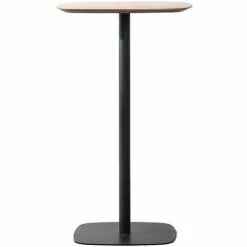 La table Pub a une planche en bois de chêne, ce qui la rend solide et résistante, et le pied central est en acier noir. Mélangez design industriel et confort. Idéal pour les cuisines et les hôtels.