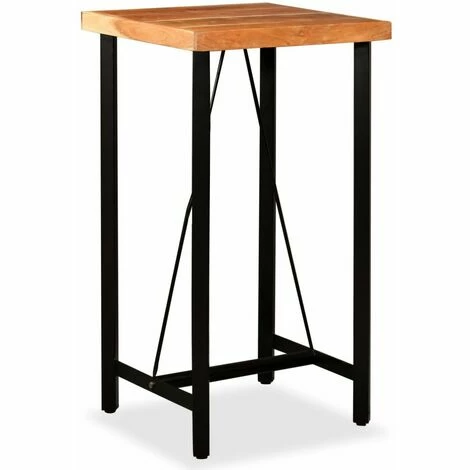 Budget 😉 HAPPYSHOPPING Ensemble De Bar 3 Pcs Bois D’acacia Cuir Veritable Et Toile 😍