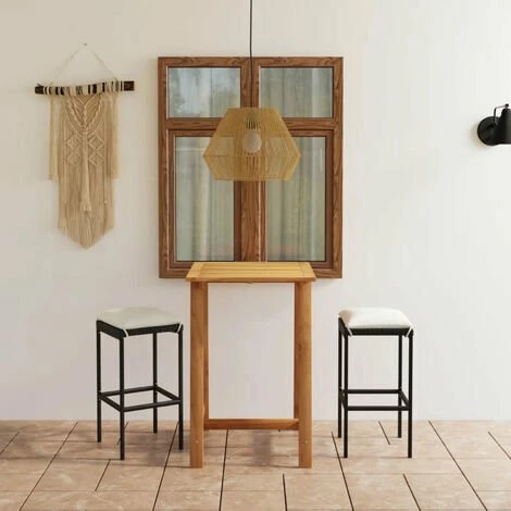Cet ensemble de bar de jardin a un design élégant et sera le point de mire de votre jardin, patio ou terrasse. La table est fabriquée en bois d’acacia massif avec une finition à l’huile, ce qui la rend stable, durable et facile à entretenir. Doté d’un cadre en acier enduit de poudre recouvert de résine tressée résistante aux intempéries, ce tabouret de bar est robuste et facile à nettoyer. Les coussins de siège épais et amovibles sont très confortables. Les housses de coussin avec fermeture éclair peuvent être facilement enlevées et lavées. Remarque : Nous vous recommandons de couvrir l’ensemble pendant la pluie, la neige et le gel.