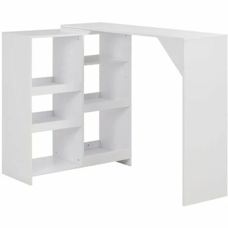 Notre table de bar est le choix parfait pour les pièces où l’espace est un peu limité en raison de sa tablette amovible. Son design contemporain fait de cette table un supplément chic à votre cuisine ou à votre salle à manger. Fabriquée en panneau d’aggloméré robuste, elle est durable, stable et facile à nettoyer. Le cadre en forme de L et le triangle de renforcement de la table confèrent à la table une stabilité optimale. De plus, avec sa hauteur idéale et son design spécial, cette table haute complétera certainement la décoration de votre maison. Sentez-vous à l’aise et savourez un verre ou un repas en famille ou entre amis ! La table de bar est facile à assembler.