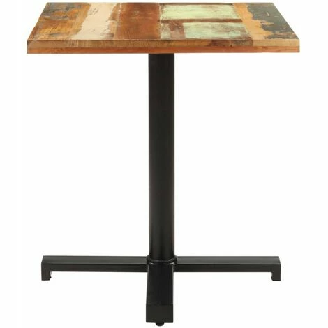 Cette table de bistro en bois est un excellent suppl’ement et est spécialement conçue pour votre intérieur ou votre jardin. Le dessus de table est fait de bois de récupération solide avec une finition de couleur mélangée, ce qui le rend stable et durable. Chaque meuble est unique et légèrement différent l’un de l’autre. Les meubles en bois de récupération ont les caractéristiques de différents bois comme le teck, le manguier et l’acacia. Les signes d’usure et la structure du grain visible donnent à chaque pièce sa propre histoire et un look unique. La base en fer enduit de poudre confère stabilité et robustesse. Cette table à dîner sert même de table pour placer votre boisson ou toute autre nécessité dont vous avez besoin à portée de main. Remarque importante : les couleurs et les grains varient d’une pièce à l’autre, rendant chaque meuble unique ; La livraison est également aléatoire.