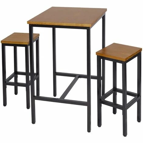 Présentation produit: Ensemble table de bar table de bistrot en 3 parties avec 2 chaises chêne