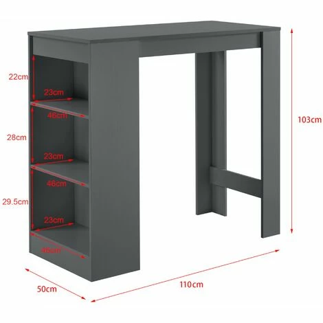 Présentation produit: Table de bar avec rangement bistro haut avec 3 étagères 110 cm gris foncé