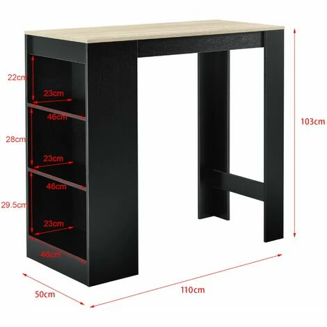 Présentation produit: Table de bar avec rangement bistro haut avec 3 étagères 110 cm noir et chêne