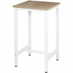 Présentation produit: Table de bar table de cuisine en aggloméré et métal table de bistrot table haute 102 cm chêne clair