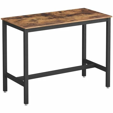 Présentation produit: Table haute de bar vintage table polyvalente avec armature en fer pour boissons cocktails bar brasserie restaurant salon cuisine stable métal noir et bois 120 x 60 cm