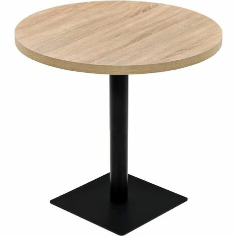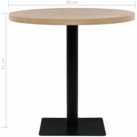 Présentation produit: Table haute mange debout bar bistrot MDF et acier rond 80 cm chêne marron