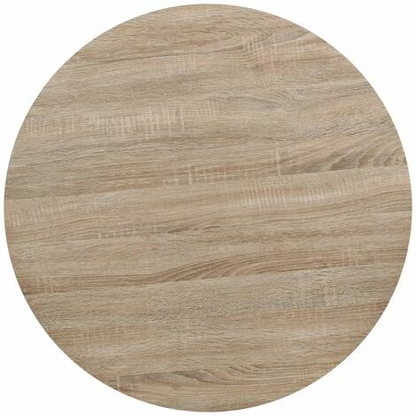 Le dessus de table est en MDF avec une finition de grain et est supporté par un pied et une base en acier.