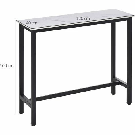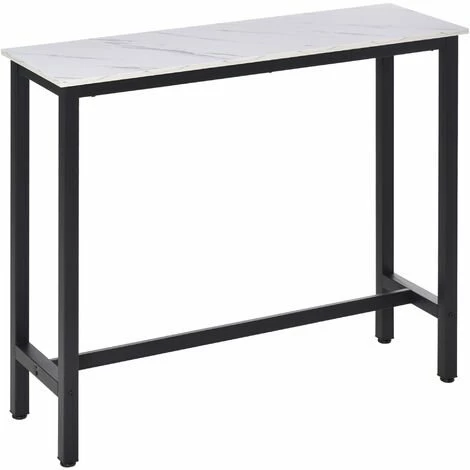 Cette magnifique table de bar design contemporain épuré avec châssis/piètement métal noir et plateau aspect marbre blanc s’intègrera parfaitement à l’espace intérieur de votre choix : cuisine, salon, etc…