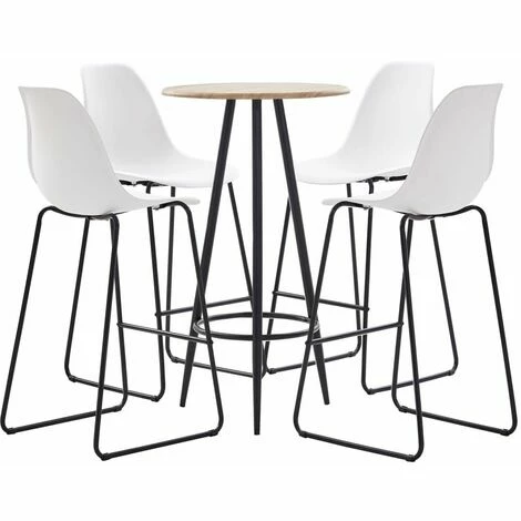 Avec un design moderne et contemporain, notre ensemble de bar est idéal pour les maisons, jardins, bars, pubs ou restaurants modernes. Son design épuré et contemporain complétera toute décoration intérieure. Le dessus de table est en MDF qui est facile à nettoyer. Le cadre en acier enduit de poudre ajoute à la stabilité et à la solidité de la table de bar. Les chaises de bar ont une assise ergonomique avec dossier intégré dans un look moderne et courbé. De plus, elles sont faciles à monter. Notre ensemble de chaises de bar est idéal pour savourer un verre de vin au bar, manger quelque chose au comptoir ou pour l’utiliser comme siège supplémentaire lorsque vous avez des invités. La livraison comprend une table de bar et 4 chaises de bar.