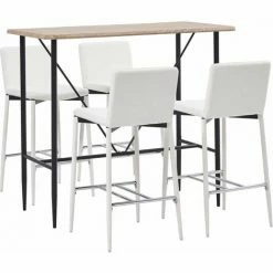Avec un design moderne et contemporain, notre ensemble de bar est idéal pour les maisons, jardins, bars, pubs ou restaurants modernes. Son design épuré et contemporain complétera toute décoration intérieure. Le dessus de table est en MDF qui est facile à nettoyer. Le cadre en acier enduit de poudre ajoute à la stabilité et à la solidité de la table de bar. Les chaises de bar ont une assise ergonomique avec dossier intégré dans un look moderne et courbé. De plus, elles sont faciles à monter. Notre ensemble de bar est idéal pour savourer un verre de vin au bar, manger quelque chose au comptoir ou pour l’utiliser comme siège supplémentaire lorsque vous avez des invités. La livraison comprend une table de bar et 4 chaises de bar.