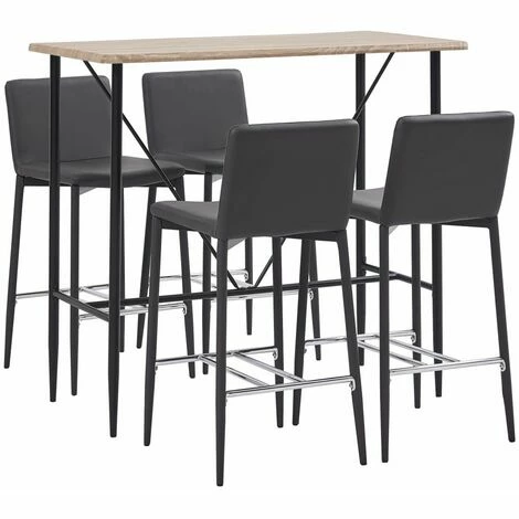Avec un design moderne et contemporain, notre ensemble de bar est idéal pour les maisons, jardins, bars, pubs ou restaurants modernes. Son design épuré et contemporain complétera toute décoration intérieure. Le dessus de table est en MDF qui est facile à nettoyer. Le cadre en acier enduit de poudre ajoute à la stabilité et à la solidité de la table de bar. Les chaises de bar ont une assise ergonomique avec dossier intégré dans un look moderne et courbé. De plus, elles sont faciles à monter. Notre ensemble de bar est idéal pour savourer un verre de vin au bar, manger quelque chose au comptoir ou pour l’utiliser comme siège supplémentaire lorsque vous avez des invités. La livraison comprend une table de bar et 4 chaises de bar.