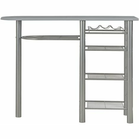 Fabriqué en bois et en acier durable, cet ensemble de bar en 3 pièces se distingue par sa polyvalence et constituera un supplément distinctif aux maisons, aux jardins, aux bars, aux pubs ou aux restaurants. Fabriqué en bois durable, les surfaces sont faciles à nettoyer. Les cadres en acier offrent une grande stabilité. Les chaises peuvent être repliées lorsqu’elles ne sont pas utilisées, afin de gagner de la place. De plus, plusieurs tablettes de rangement et un porte-bouteilles de vin se trouvent sous la table pour que vos affaires soient bien organisées et à portée de main. L’ensemble de salle à manger est facile à assembler. La livraison inclut 1 table avec étagères et 2 chaises pliantes.