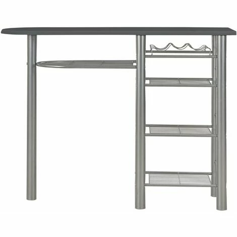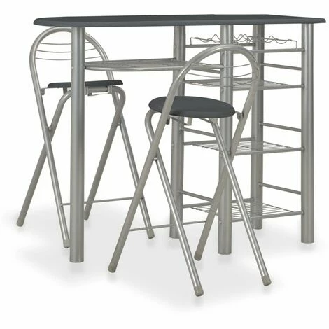 Fabriqué en bois et en acier durable, cet ensemble de bar en 3 pièces se distingue par sa polyvalence et constituera un supplément distinctif aux maisons, aux jardins, aux bars, aux pubs ou aux restaurants. Fabriqué en bois durable, les surfaces sont faciles à nettoyer. Les cadres en acier offrent une grande stabilité. Les chaises peuvent être repliées lorsqu’elles ne sont pas utilisées, afin de gagner de la place. De plus, plusieurs tablettes de rangement et un porte-bouteilles de vin se trouvent sous la table pour que vos affaires soient bien organisées et à portée de main. L’ensemble de salle à manger est facile à assembler. La livraison inclut 1 table avec étagères et 2 chaises pliantes.