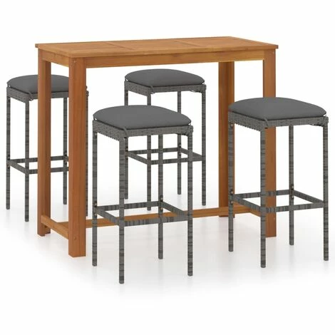 Budget 🔥 Hommoo Ensemble De Bar De Jardin Avec Coussins 5 Pcs Gris ⭐