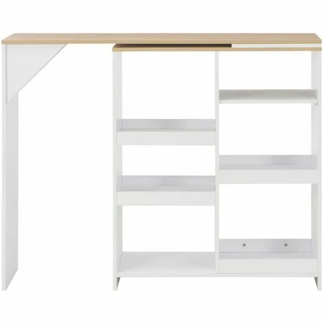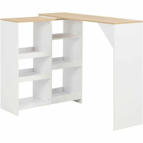 Notre table de bar est le choix parfait pour les pièces où l’espace est un peu limité en raison de sa tablette amovible. Son design contemporain fait de cette table un supplément chic à votre cuisine ou à votre salle à manger. Fabriquée en panneau d’aggloméré robuste, elle est durable, stable et facile à nettoyer. Le cadre en forme de L et le triangle de renforcement de la table confèrent à la table une stabilité optimale. De plus, avec sa hauteur idéale et son design spécial, cette table haute complétera certainement la décoration de votre maison. Sentez-vous à l’aise et savourez un verre ou un repas en famille ou entre amis ! La table de bar est facile à assembler.