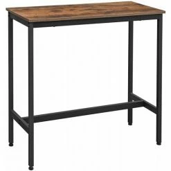 La table de bar est faite dans un style rustique. Le plateau est en plateau de particules. L’avantage de la table est le cadre en acier placé en bas qui augmente le confort d’utilisation et assure une plus grande stabilité. Charge maximale de la table de bar 100 kg. Les pieds réglables de la table de bar permettent de mettre le meuble à niveau.