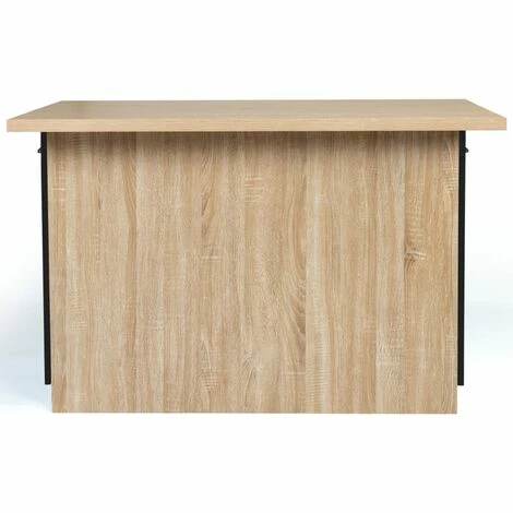 Descriptif de l’îlot central bois façon hêtre et portes noiresL’espace de votre intérieur, de votre cuisine sera optimisé grâce à notre îlot central avec plan de travail et rangements incorporés en bois façon hêtre et portes noires !Le design moderne de cet îlot central, ses lignes droites et épurées, ses couleurs sobres tout en contraste, et ses finitions mates lui permettent de s’adapter idéalement à tout type d’intérieur ! Il conférera un aspect net et rangé à votre cuisine !Son format généreux mais néanmoins compact, peu encombrant, facilite la circulation tout en évitant les pas inutiles au quotidien dans votre pièce de vie. Il structure l’espace de votre cuisine ! Parfait pour les pièces de vie ouvertes et aérées!Cet îlot central de forme rectangulaire classique est idéalement conçu pour recevoir 2 couverts. Ambiance cosy pour des petits-déjeuners à 2 !Son plateau d’une épaisseur de 3 cm offre un solide plan de travail large et profond pour poser plats, bouteilles, etc. Ce plan de travail débordant sur un côté a pour avantage de servir de mange-debout et de pouvoir ainsi manger sur le pouce debout ou sur un tabouret de bar !Pratique et fonctionnel, il constitue une véritable solution de rangement rapide pour l’aménagement des petits espaces car il dispose de 2 portes latérales à chaque extrémité aux jolies poignées noires, donnant sur 2 compartiments dotés d’une étagère intermédiaire pour organiser votre rangement ! Discrets, cachés sous le plan de travail, ils représentent un véritable gain de place !Vous bénéficiez ainsi de nombreux espaces de rangement pour vos ustensiles, couverts, vaisselle, bouteilles et condiments ! De plus, vous les conservez à portée de main et vous optimisez l’espace !Sa structure en PB (panneaux de particules) épaisseur 1,5 cm lui apporte stabilité et robustesse.Tantôt coin repas, tantôt coin cuisine, avec sa triple fonction table haute/plan de travail/meuble de rangement, il vous fera gagner du temps et de l’espace, et apportera un look contemporain à votre intérieur !Optez sans tarder pour cette installation tendance et conviviale à la fois fonctionnelle et décorative !Dimensions de l’îlot central de cuisine IVODimensions totales : Longueur 120 cm x largeur 80 cm x Hauteur 82 cmNettoyage rapide et entretien facile avec chiffon humide doux.Découvrez l’ensemble de nos meubles et éléments de cuisine sur notre boutique en ligne. – HORS CORSE -article non livrable en Corse