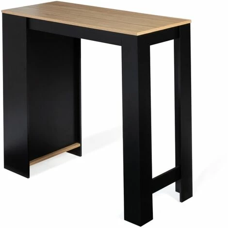 Descriptif de la table de bar BARTH en bois noirLa table de bar BARTH pour 2 à 4 personnes en bois coloris noir et façon hêtre optimisera l’espace de votre cuisine !Grâce à son design contemporain, ses lignes épurées et ses finitions mates, elle s’adapte idéalement à tout type d’intérieur !Avec son plateau de 110 cm de long, cette table haute accueille jusqu’à 4 personnes. Robuste et solide, sa structure est en PB (panneaux de particules de bois épaisseur 1,5 cm).Véritable solution de rangement pour les petits espaces, elle dispose de 3 compartiments sur le côté !Fonctionnelle et pratique, vous bénéficiez ainsi de nombreuses capacités de rangement pour vos ustensiles, couverts, vaisselle, bouteilles et condiments et les conservez à portée de main! Tout en optimisant l’espace ! Dimensions de la table haute BARTHDimensions totales : Longueur 110 cm x largeur 50 cm x Hauteur 103 cmDimensions des pieds : Longueur 10 cm x largeur 10 cm x 101,5 cmHauteur du 1er compartiment de rangement sur le côté : 26,5 cmHauteur du 2ème compartiment de rangement sur le côté : 26,5 cmHauteur du 3ème compartiment de rangement sur le côté : 28 cmLargeur des compartiments de rangement sur le côté : 46,5 cmProfondeur des compartiments de rangement sur le côté : 23 cmModèle disponible en différents coloris sur notre boutique en ligne :- Table de bar BARTH 2 à 4 personnes bois blanc plateau blanc- Table de bar BARTH 2 à 4 personnes bois blanc plateau effet béton- Table de bar BARTH 2 à 4 personnes bois blanc plateau façon hêtre- Table de bar BARTH 2 à 4 personnes bois blanc plateau gris- Table de bar BARTH 2 à 4 personnes ajourée bois blanc plateau gris- Table de bar BARTH 2 à 4 personnes ajourée bois blanc plateau façon hêtre