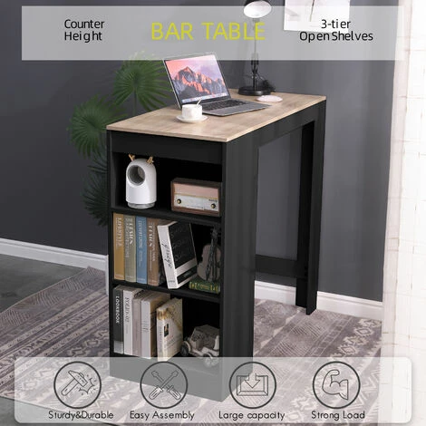 Gain de place : spécialement conçu pour un espace limité. Les étagères intégrées à 3 niveaux sur le côté de la table offrent un grand espace de rangement pour la vaisselle, les bouteilles, les verres et d’autres objets.