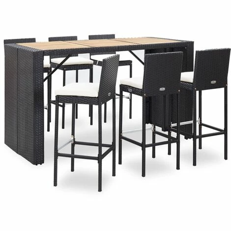 Notre mobilier de bar en résine tressée sera le point de mire de votre jardin, patio ou terrasse. Il a un design élégant. L’armature en acier revêtu de poudre rend l’ensemble solide et robuste et grâce à leurs constructions légères, tous les articles sont faciles à déplacer. Grâce au rotin synthétique résistant aux intempéries et à l’eau, l’ensemble de bar est facile à nettoyer. Le dessus de table est fait de bois d’acacia massif, un bois dur tropical, qui est également résistant aux intempéries et durable. Les coussins de siège, faits en polyester hydrofuge, sont épais, doux et très confortables grâce à leur rembourrage en mousse. Les housses amovibles et lavables sont équipées de fermetures éclair. Remarque : nous vous recommandons de couvrir l’ensemble pendant la pluie, la neige et le gel.