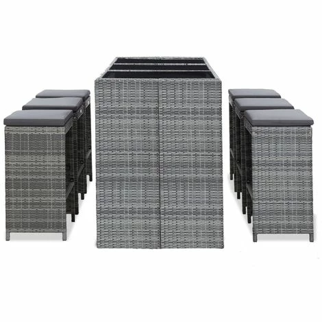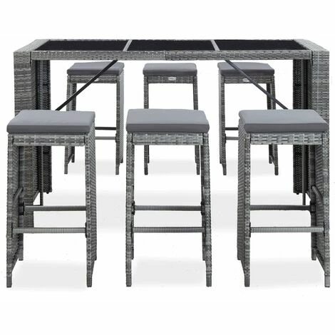 Offres 🎉 INLIFE Meuble De Bar De Jardin 7 Pcs Et Coussins Résine Tressée Gris ⭐