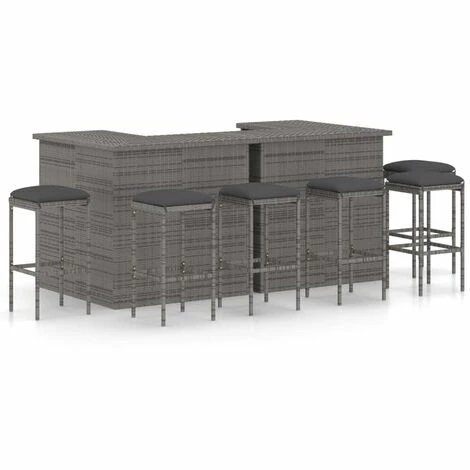 Cet ensemble de bar de jardin a un design élégant et sera le point de mire de votre jardin, patio ou terrasse. Fabriqué en résine tressée résistante aux intempéries et imperméable, cet ensemble de bar est facile à nettoyer, résistant à l’usure et adapté à une utilisation quotidienne. Le cadre en acier enduit de poudre rend la table et les tabourets très robustes et durables. Grace à la construction légère, tous les articles sont faciles à déplacer. Les coussins de siège amovibles et épais sont très confortables. Les housses des coussins avec fermetures éclair peuvent être facilement enlevées et lavées. Remarque : Nous vous recommandons de couvrir l’ensemble pendant la pluie, la neige et le gel.