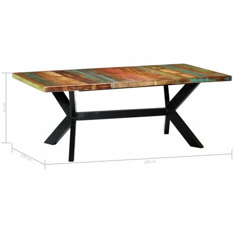 Cette table de salle à manger frappante en bois dans le style industriel sera un supplément distinctif à votre cuisine ou salle à manger. Cette table de salle à manger est faite de bois massif de récupération, ce qui signifie qu’il a les caractéristiques de différents bois comme le teck, le bois de manguier, l’acacia, etc. Le bois de récupération est solide, stable, durable et beau. Des signes d’usure et l’artisanat donnent à chaque pièce un aspect unique et ajoutent à son style vintage spectaculaire. Elle est entièrement faite à la main et chaque étape du processus est réalisée avec le plus grand soin, qu’il s’agisse du polissage, de la peinture ou du laquage. Les pieds en acier complètent l’aspect industriel, avec le cadre en croix en acier qui contribue à la construction robuste. La table est facile à assembler. Remarque importante : Les couleurs peuvent varier d’une pièce à l’autre, ce qui rend chaque table de salle à manger unique ; la livraison est aléatoire.
