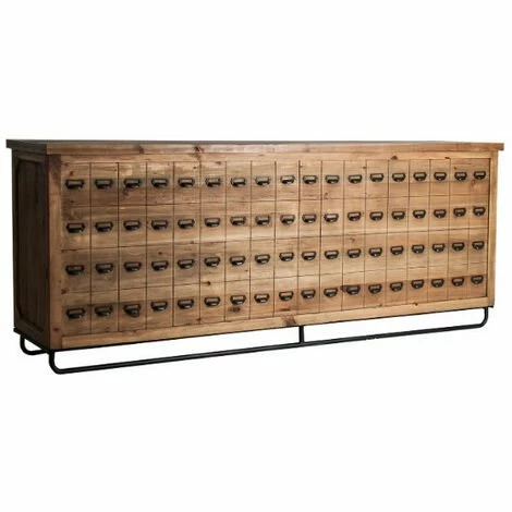 Ce magnifique comptoir de bar en pin massif recyclé clair est parfait pour votre coin bar. Il dispose de 4 tiroirs et de 8 compartiments ouverts pour ranger vos couverts.Dimensions : L 250 x H 100 x P 60 cmGarantie : 2 ansNous ne livrons pas en Corse.