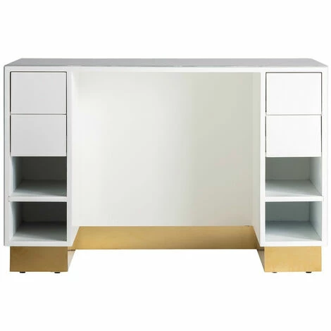Cette table de bar présentée avec des pieds en acier doré et une structure très solide en en bois massif d’orme recouvert de cristal teinté blanc effet marbreL 120 x H 78 x P 70 cm – 97 kgPoids supporté: 80 kg.Couleurs doré et blanc Matière : Structure en bois massif blancVerre cristal trempé anti rayure teinté blanc et effet marbrePieds acier doréCollection haut de gammeFabrication européenne Garantie : 5 ansNous ne livrons pas en Corse.