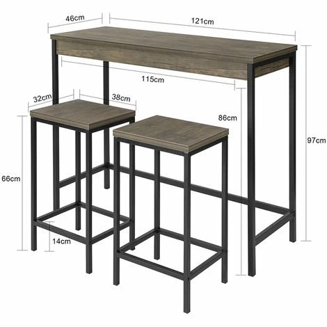 Meilleur prix 😉 Lot Table Et Tabourets De Bar De Style Industriel Ensemble Table De Bar + 2 Tabourets,SoBuy 🌟