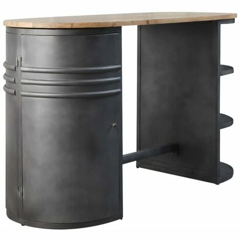 Son principal atout, l’originalité. Unique en son genre, chaque détail est au rendez-vous ! On aime la patine grise qui donne un rendu très naturel à l’ensemble du meuble, on adore les nuances claires de son plateau conçu en manguier, enfin on le choisi pour sa capacité de rangement et son ergonomie très bien pensée. Cette table mange debout bois en métal gris met l’accent sur un rangement organisé en vous proposant tous types de stockage. Vous profiterez de 6 niches, 3 d’un côté, 3 de l’autre, vous permettant de décorer et stocker des accessoires de décoration, ustensiles de cuisine… A l’opposé, vous trouverez deux portes placées des deux côtés. 2 étagères vous permettront d’organiser votre rangement. Tout est prévu afin de faciliter votre quotidien.